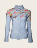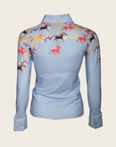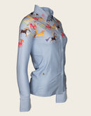 A new collection of Espoir Shirts with a Western Flair made from a technical, breathable, light sports fabric that is UV Resistant. The technical fit of the shirt ensures the perfect fit for the rider that provides maximum comfort and protection. The prints are hand illustrated. The newer designs have Pearl snaps. Some shirts have mesh sleeves.
