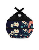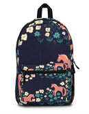A compact, cheerful backpack that brings soft, whimsical charm to everyday adventures. The navy field is sprinkled with small cream and teal blossoms, while playful salmon-pink horses trot through the pattern—giving the bag a vintage-inspired, storybook feel. Lightweight yet sturdy, it moves easily from school corridors to weekend markets. The padded mesh back and adjustable straps keep shoulders comfortable on long walks. Multiple zip pockets and an internal sleeve keep a tablet, water bottle, and small essentials organized and within reach. Crafted with quick-drying polyester and assembled in the USA, this backpack blends practical, everyday function with a gentle, pastoral aesthetic suited to those who love nostalgic prints and handcrafted vibes.