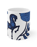 Ceramic Mug 11oz in Peony Horses in Royal Blue