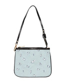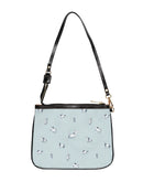 A small shoulder bag that feels like a quiet companion on city walks and open-road afternoons. Soft PU leather and a black strap sit lightly on the shoulder while thesky blue canvas features an Espoir design with delicate white horse sketches and trailing botanical motifs. The double-sided print keeps the artwork visible from every angle, while gold hardware and a neat zipper add a little shine. Inside, two open pockets help keep a phone and cards within reach — an uncomplicated carry for someone who prefers thoughtful details over fuss. It settles into everyday rhythms: coffee stops, gallery visits, and market runs, bringing a subtle equestrian grace to your daily route.