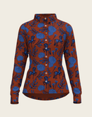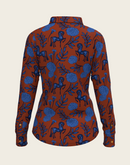 Peony Navy on Tan Ladies Casual Button Shirt