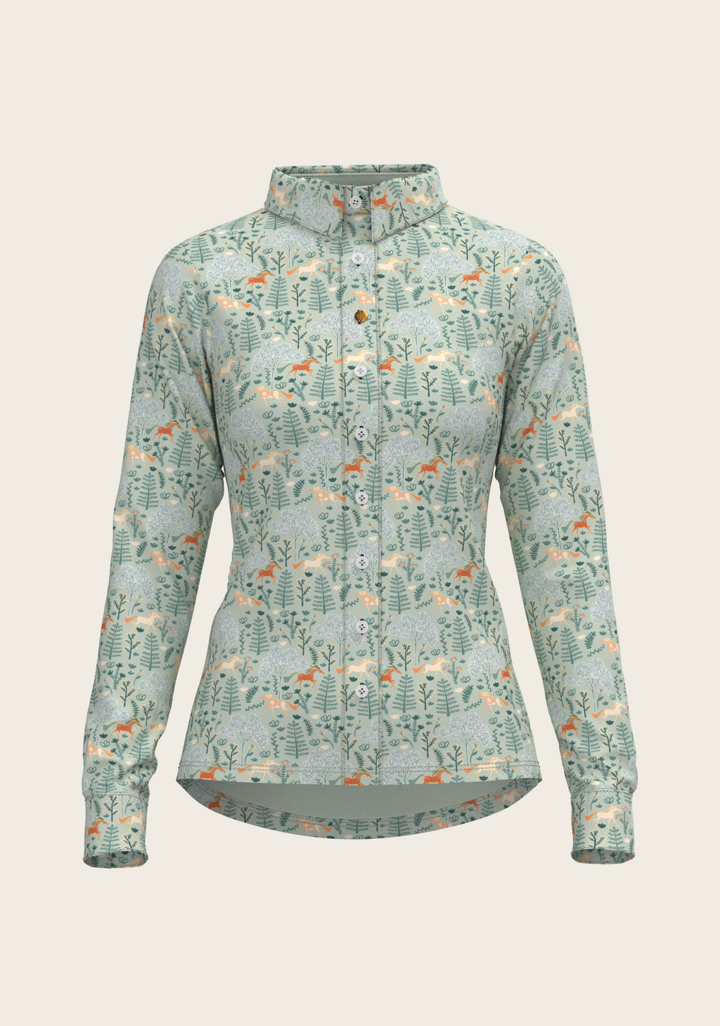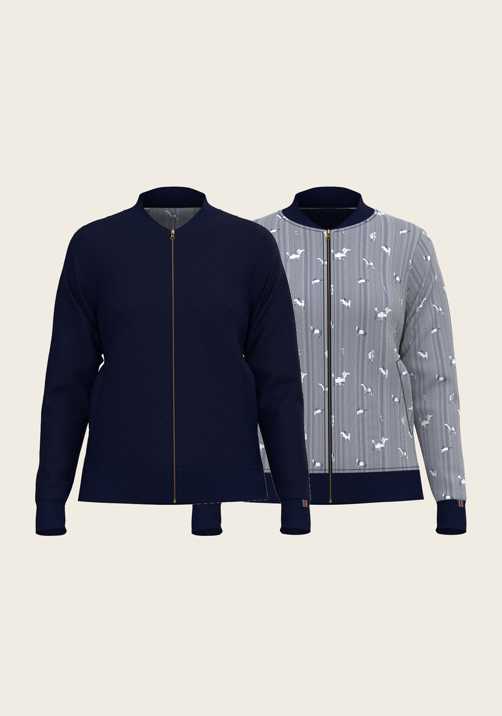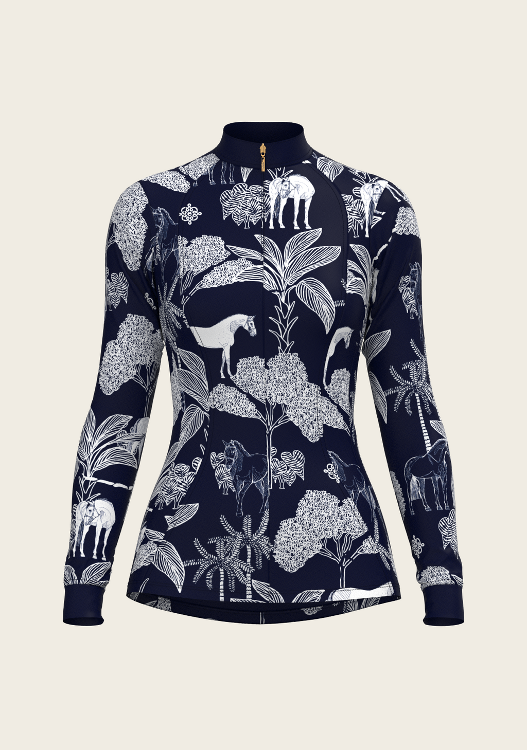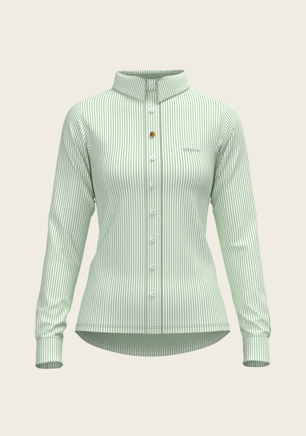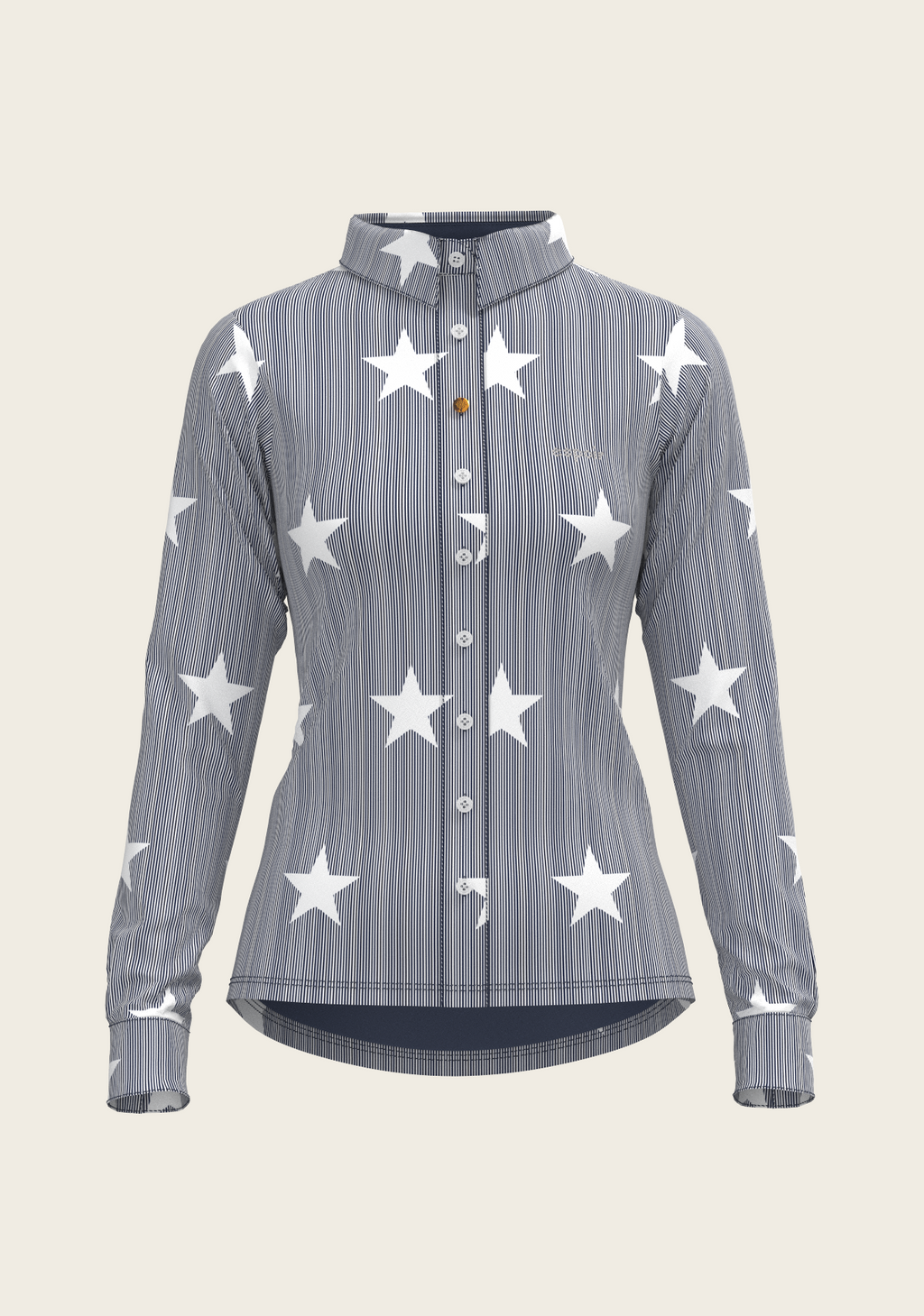 A fitted show jacket made from a lightweight stretchable fabric, stylishly executed with princess style lines. The front panel is closed with beautiful custom Espoir buttons which match smaller buttons on each sleeve.Tone on tone details on the collar and front pocket zips add sophisticated details to this jacket. A sporty, sophisticated styled equestrian jacket.