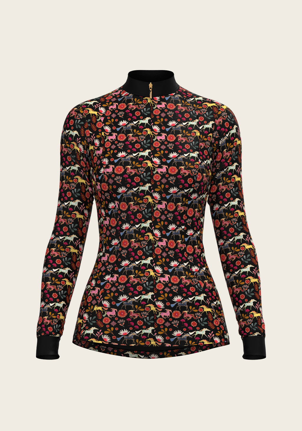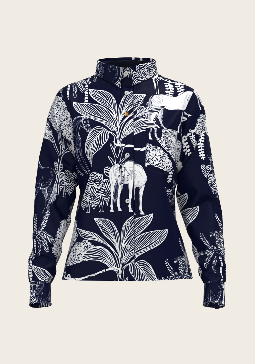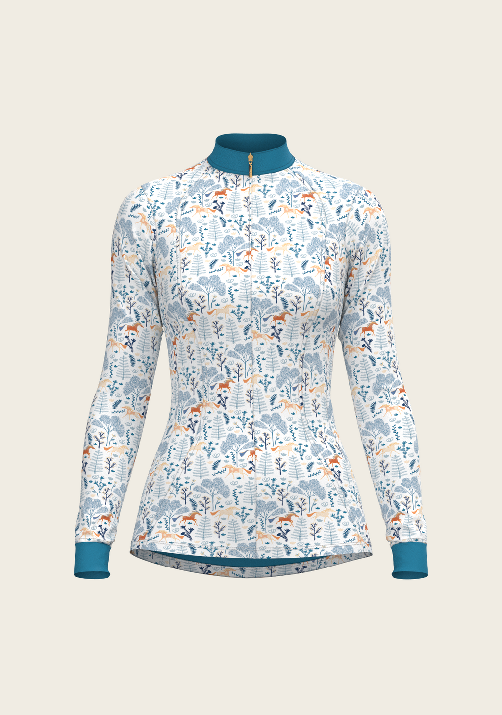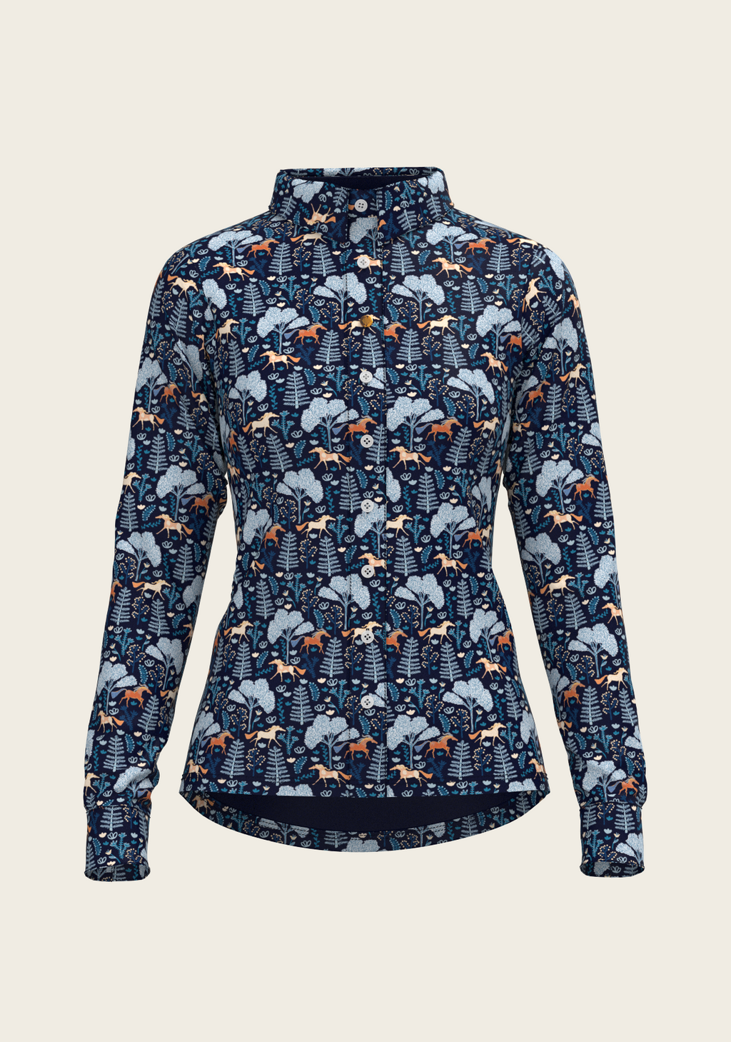 A fitted show jacket made from a lightweight stretchable fabric, stylishly executed with princess style lines. The front panel is closed with beautiful custom Espoir buttons which match smaller buttons on each sleeve.Tone on tone details on the collar and front pocket zips add sophisticated details to this jacket. A sporty, sophisticated styled equestrian jacket.