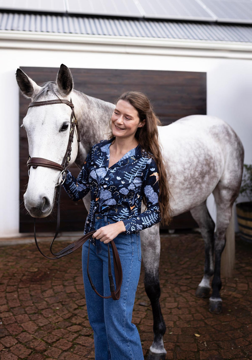 A fitted show jacket made from a lightweight stretchable fabric, stylishly executed with princess style lines. The front panel is closed with beautiful custom Espoir buttons which match smaller buttons...