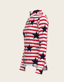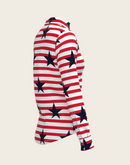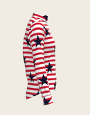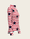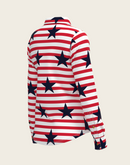 A new collection of Espoir shirts made from a technical, breathable, structured sports fabric that is UV resistant. The everyday button shirts have a center panel of buttons with one small custom gold Espoir button on the front and one on each cuff. The fabric patterns are hand illustrated. A slimming fit for an easy wearing stable to street style shirt.