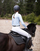 A formal looking show shirt made from luxurious technical fabrics. A hidden quarter zip is neatly constructed by a printed inner detailed fabric. On the front chest there is a Swarovski logo detail. Two hidden stud buttons easily closes the top collar. The inner collar and cuffs have hidden printed details. Cuffs have the custom Espoir button and the back of the collar, our signature Espoir ribbon detail. These show shirts are available in long and short sleeve.