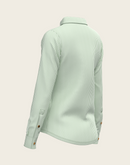 A new collection of Espoir shirts made from a technical, breathable, structured sports fabric that is UV resistant. The everyday button shirts have a center panel of buttons with one small custom gold Espoir button on the front and one on each cuff. The fabric patterns are hand illustrated. A slimming fit for an easy wearing stable to street style shirt.