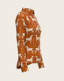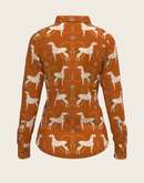 Roped Horses on Tan Ladies Button Shirt