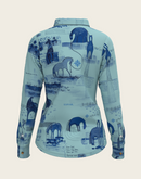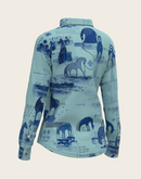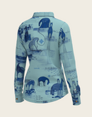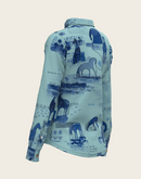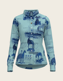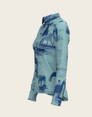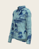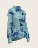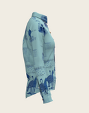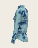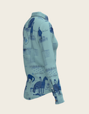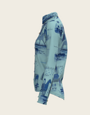 A new collection of Espoir shirts made from a technical, breathable, structured sports fabric that is UV resistant. The everyday button shirts have a center panel of buttons with one small custom gold Espoir button on the front and one on each cuff. The fabric patterns are hand illustrated. A slimming fit for an easy wearing stable to street style shirt.