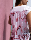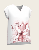 The Horse Fair in Rose Loose Fitting V Neck Shirt