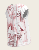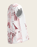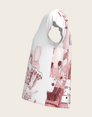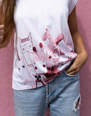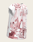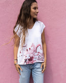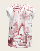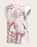An easy wearing V-neck shirt made from a very light and breathable fabric. The shirt has a loose and relaxed fit with a beautiful soft folding sleeve detail. The patterns are hand illustrated.