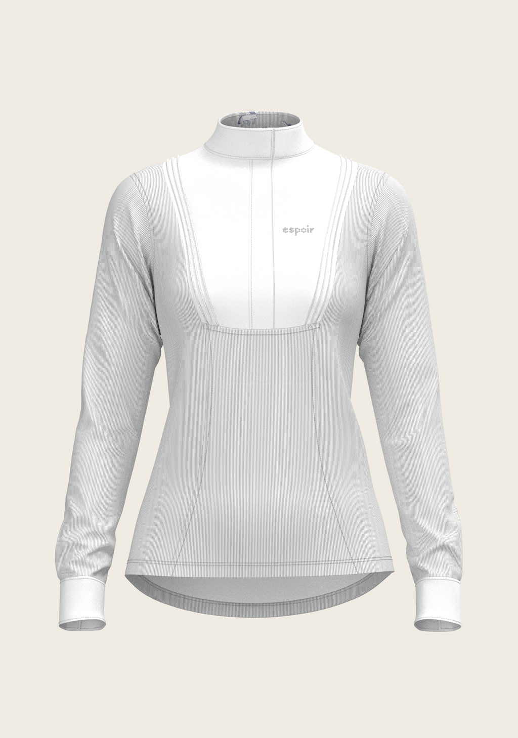 A formal looking show shirt made from luxurious technical fabrics. A hidden zip opens and closes the show shirt easily. Two hidden stud buttons easily closes the top collar. The two rows of three pleated details on the front of...