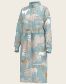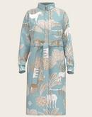 Island Horses on Sky Blue Long Sleeve Shirt Dress