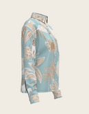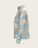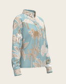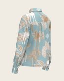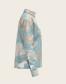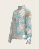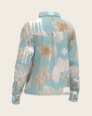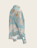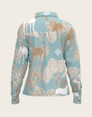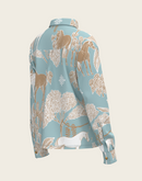 Island Horses on Sky Blue Loose Fitting Button Shirt