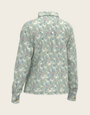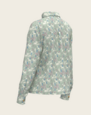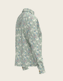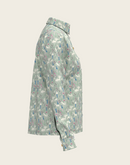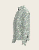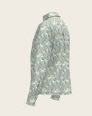 A new collection of Espoir shirts made from a very light non-stretch fabric. The shirts have a center panel of buttons with one small custom gold Espoir button on the front and one on each cuff. A very loose, relaxed fit for an easy wearing stable to street style shirt. The fabric patterns are hand illustrated