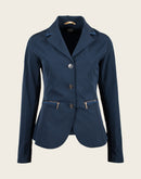This new Super soft Cool max fabric is half the weight of our regular lightweight cool max. Perfect for hot summer days. A fitted show jacket made from a lightweight stretchable fabric, stylishly executed with princess style lines. The front panel is closed with beautiful custom Espoir buttons which match smaller buttons on each sleeve.Tone on tone details on the collar and front pocket zips add sophisticated details to this jacket. A sporty, sophisticated styled equestrian jacket.