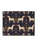 Step onto something that feels deliberate and distinctive. This heavy-duty floor mat brings a grounded elegance to entryways, kitchens, or workspace corners with a richly detailed pattern and deep navy background. The textured polyester surface keeps printed lines crisp and colors vivid, while the rubber underside grips the floor so the mat stays put during daily comings and goings. It wears well under shoes, resists fraying thanks to black trim, and reads as a thoughtfully made accent that complements both traditional and modern interiors. Made in the USA from globally sourced parts, it’s built for steady use and quiet reliability.